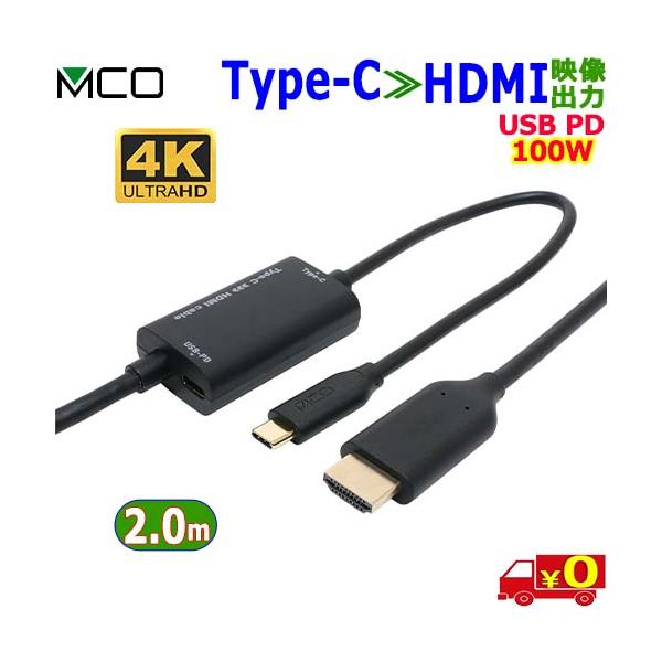 ミヨシ MCO USB Type-C to HDMI変換ケーブル【2.0m】USD-PFH20 高速給電しながら 4K 映像伝送 USB PD 100W充電【送料無料n ポスト投函】Type-C to HDMI Cable