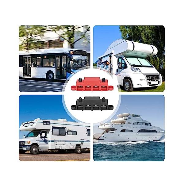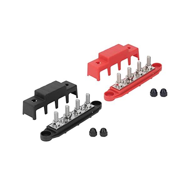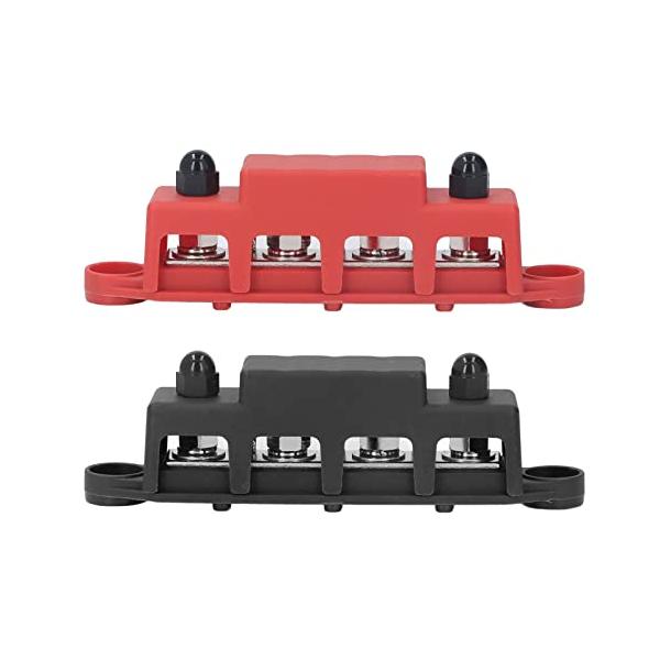 2Pcs バスバーターミナル バスバー 配電ブロック 48VDC 250A M8 ネジ 4 端子 自動車 RVボート ヨット用 赤と黒