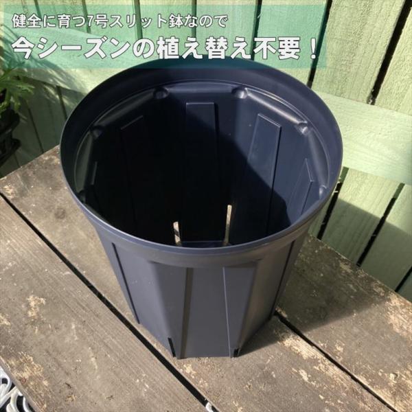 自社オリジナルのバラ専用土を使用して、株が健全に育つスリット鉢21cmロングポットに植え付け、