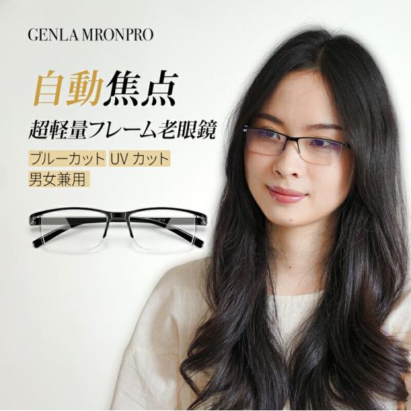 老眼鏡 高級フレームレス 自動調整老眼鏡 度数0-700度 フォーカススマートメガネ フチなし リムレス リーディンググラス 老眼鏡 ブルーライト防止 GENLAMRONPRO