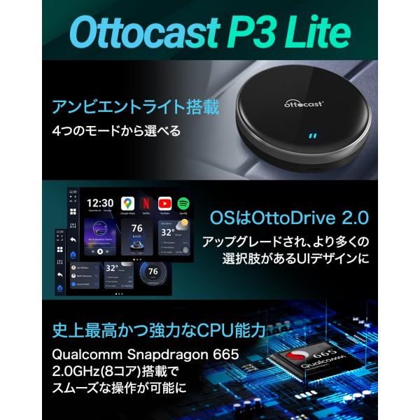 【販売実績No.1 正規代理店】オットキャスト P3 Lite OTTOCAST P3 Lite carplay ai box クロス付き