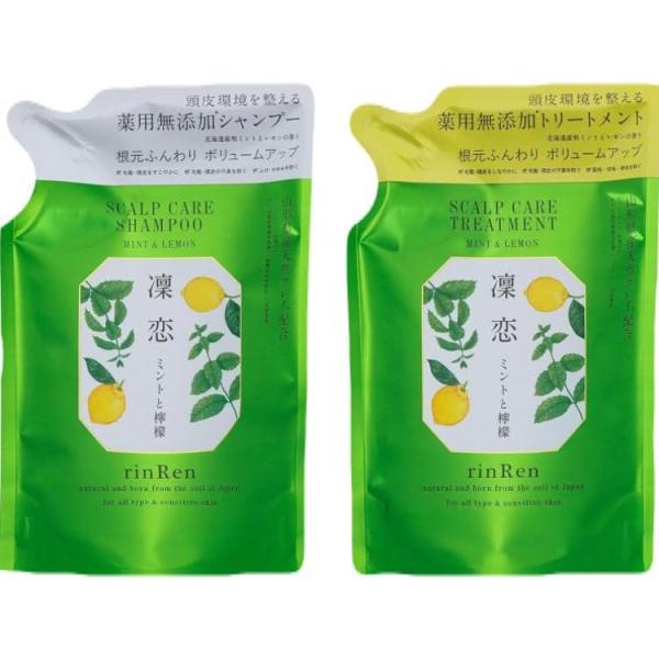 商品名:凛恋 リンレン レメディアル ミント&レモン シャンプー&トリートメント セット 各300ml 詰め替え リフィル 無添加 ノンシリコン