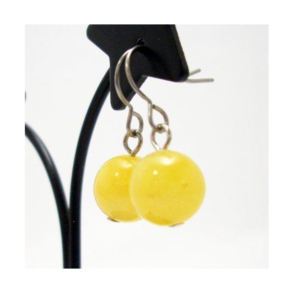 天然石 ピアス イエロージェード 8mm丸玉 チタンフック/樹脂フック/キャッチタイプ変更可 (送料無料)