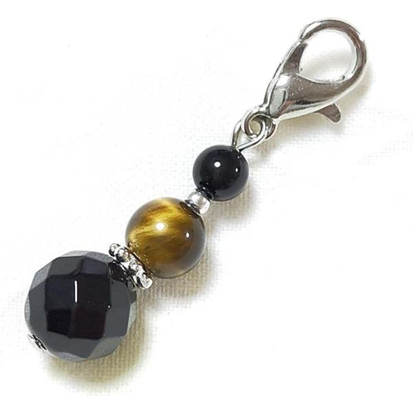 オニキスカット タイガーアイ 虎目石 オニキス カニカン付 天然石 チャーム パワーストーン バッグチャーム スマホアクセサリー マスク お守り