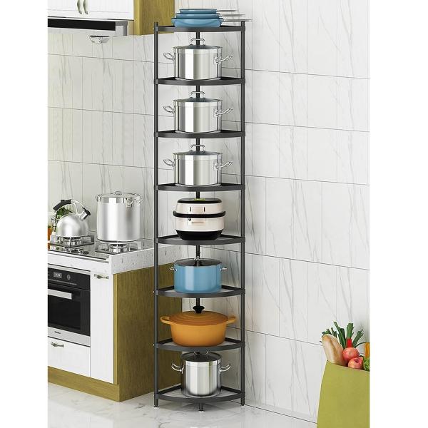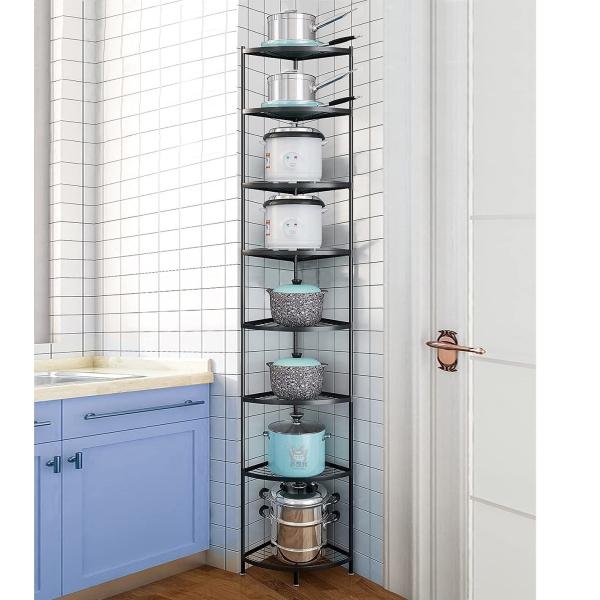 クックウェアスタンド おしゃれな鍋置き棚 8段 調理器具スタンド 自立式ポットラック ZANIYO Kitchen Corner Shelf Rack 8-Tier Cookware Stand 組立要