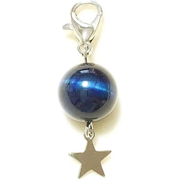 ブルータイガーアイ 虎目石 スター星 カニカン付 天然石 チャーム パワーストーン バッグチャーム キーホルダー スマホアクセサリー マスク お守り 仕事運