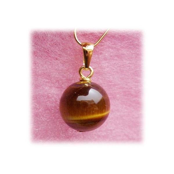 天然石 ゴールドペンダントトップ タイガーアイ(トラメ)10mm丸玉 (送料無料)