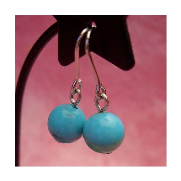 天然石 ピアス トルコ石(ターコイズ) 6mm丸玉 チタンフック/樹脂フック/キャッチタイプ変更可 パワーストーン 誕生日石 アクセサリー ハンドメイド