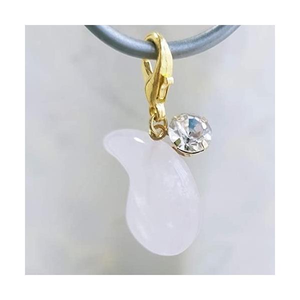 勾玉ローズクオーツ キラキラチャーム 天然石 パワーストーン バッグチャーム キーホルダー スマホアクセサリー マスクピアス マスクチャーム お守りチャーム