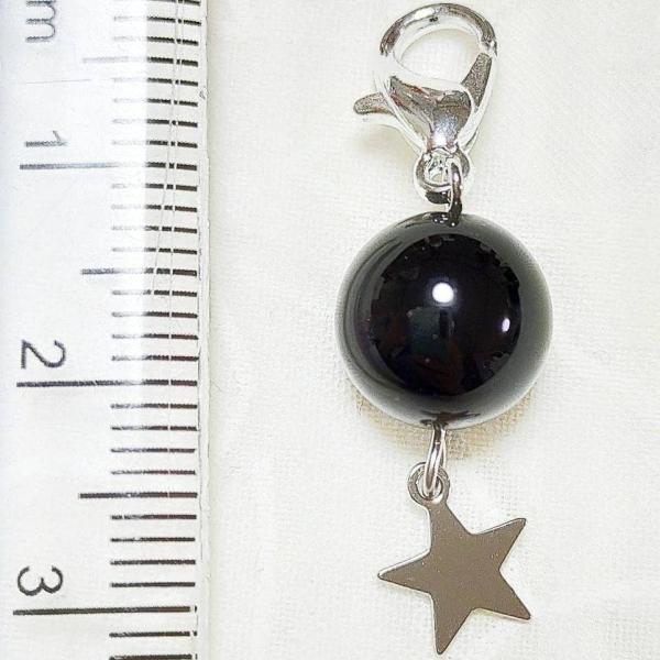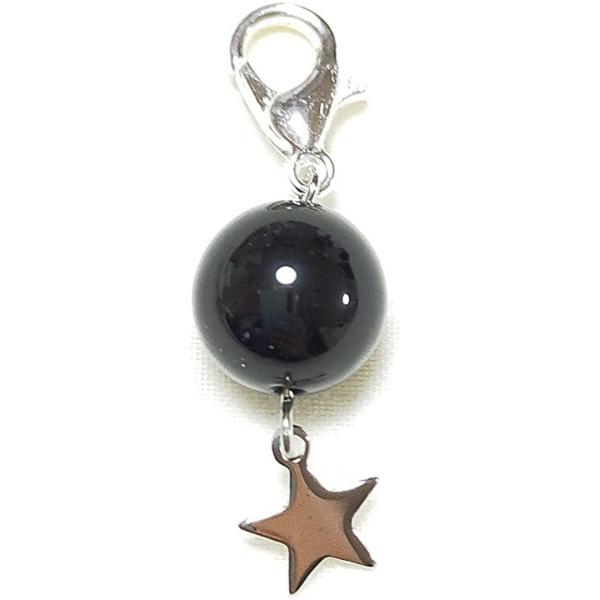 ブラックオニキス 10mm スター星 6mm カニカン付 天然石 チャーム パワーストーン バッグチャーム キーホルダー スマホアクセサリー マスク お守り