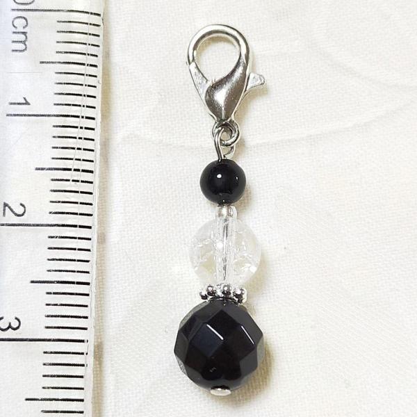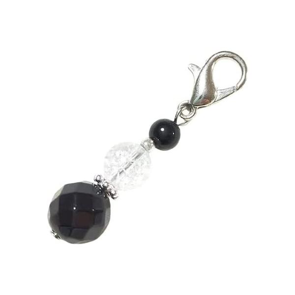 オニキスカット クラック水晶 クリスタル オニキス カニカン付 天然石 チャーム パワーストーン バッグチャーム キーホルダー スマホアクセサリー マスク お守り