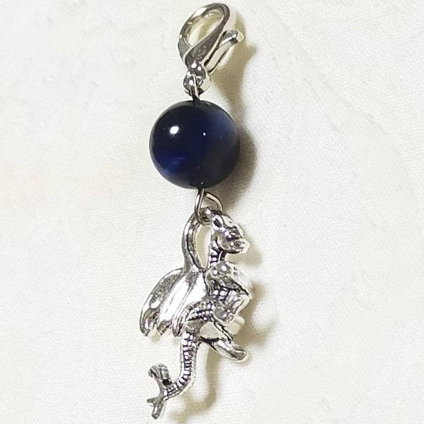 ブルー染めタイガーアイ 虎目石 ドラゴン 龍 竜 カニカン付 天然石 チャーム パワーストーン バッグチャーム キーホルダー スマホアクセサリー マスク お守り