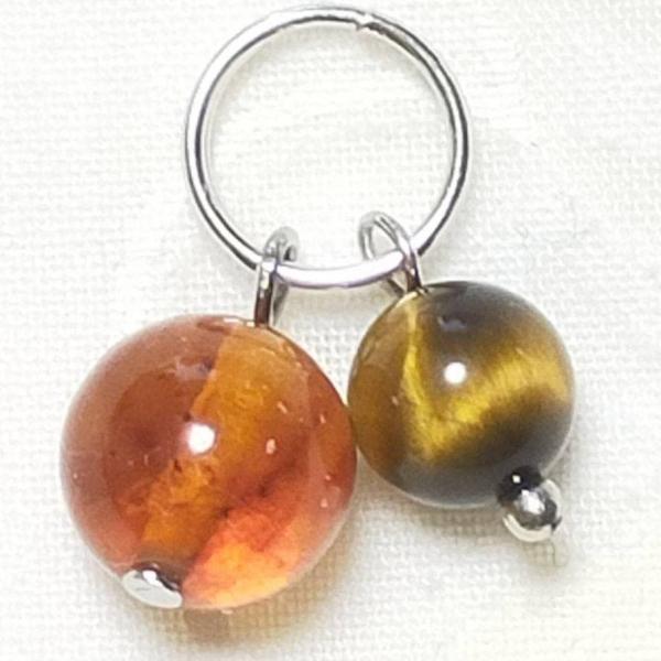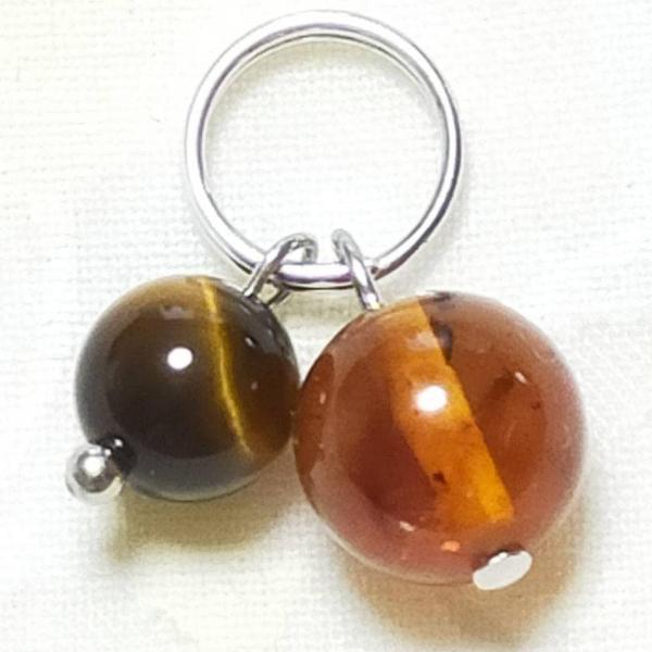 アンバー 琥珀 タイガーアイ 虎目石 二重丸カン付 ペンダントトップ 天然石 チャーム パワーストーン バッグチャーム キーホルダー スマホアクセサリー 仕事運