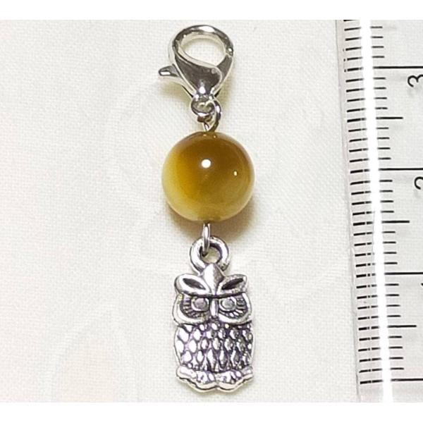 タイガーアイ 虎目石 ふくろう 小 カニカン付 天然石 チャーム パワーストーン バッグチャーム キーホルダー スマホアクセサリー マスク お守り 仕事運 開運