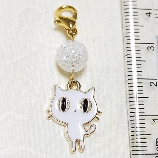 クラック水晶 白猫 しろねこ cat カニカン付 天然石 チャーム バッグチャーム キーホルダー スマホアクセサリー マスクピアス お守り ハロウィン