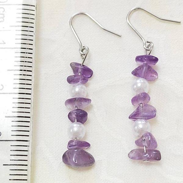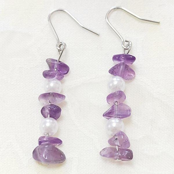 アメジスト さざれ石 パール調ビーズ ピアス ゆらゆらピアス 天然石ピアス パワーストーン 良質天然石 開運 チタンフック/樹脂フック/キャッチタイプ変更可