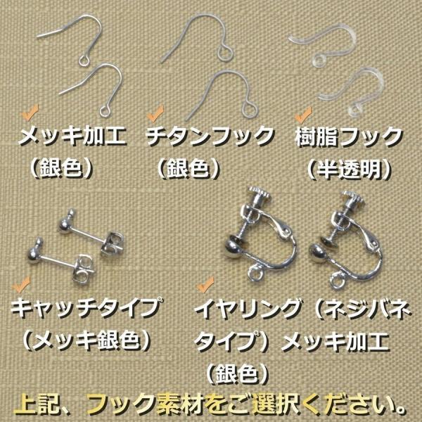 ロジウム(銀色)メッキ、又は、樹脂フック、チタンフック、キャッチタイプ、イヤリング(+100円)のいずれかをご選択下さい。