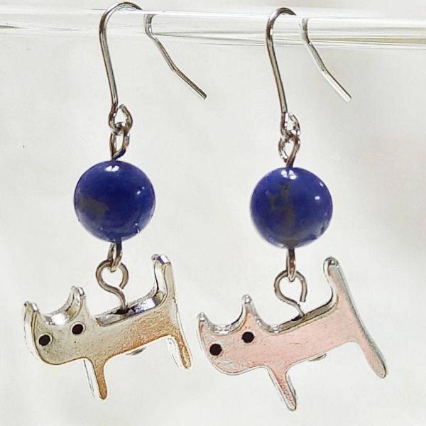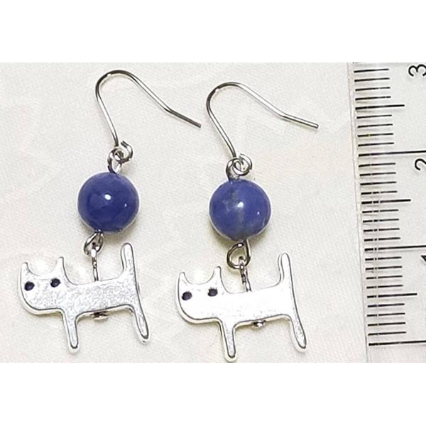 ブルーソーダライト 猫ねこちゃん シンプルピアス ゆらゆらピアス 天然石ピアス パワーストーン 良質天然石 チタンフック/樹脂フック/キャッチタイプ変更可 開運