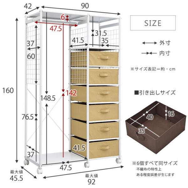 最大値:(約)幅92cm×奥行き45.5cm×高さ160cm