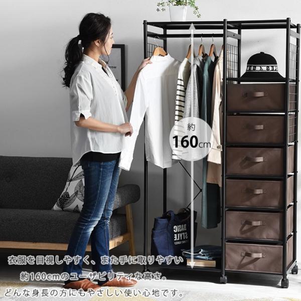 ハンガーラック 引き出し付き クローゼット 幅90cm