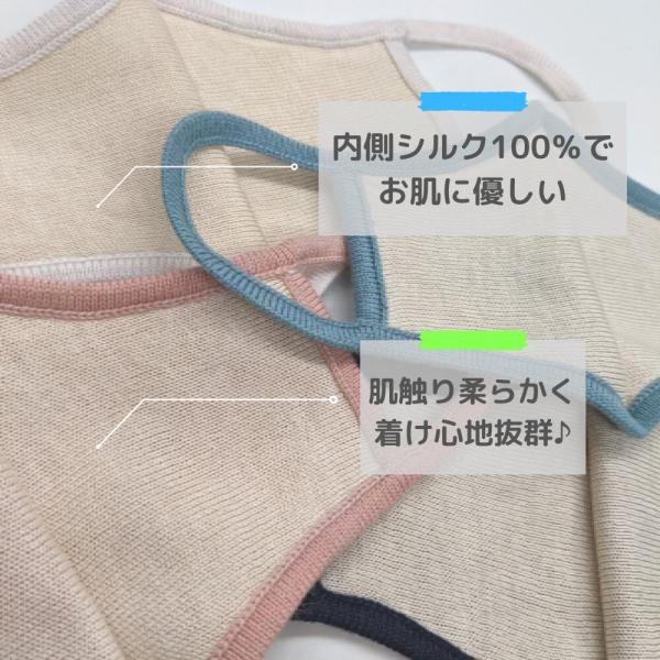 子供用マスク。内側シルクでお肌に優しく、外側ニットで暖かい。