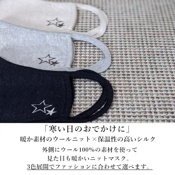 贅沢な着け心地インナーシルクニットマスク シルクマスク ニットマスク おしゃれマスク 冬マスク 洗えるマスク 防寒 暖かいマスク 刺繍