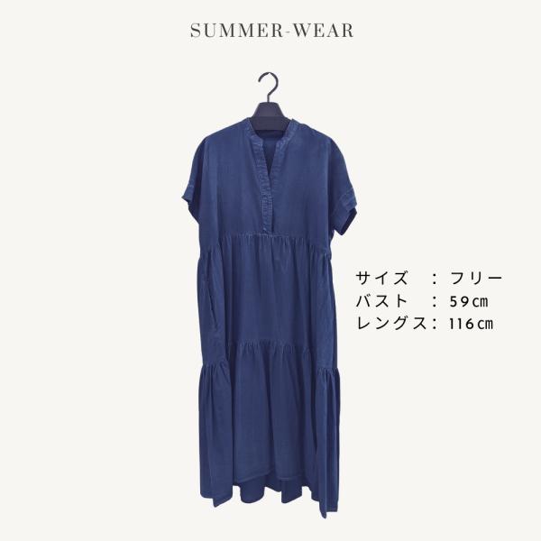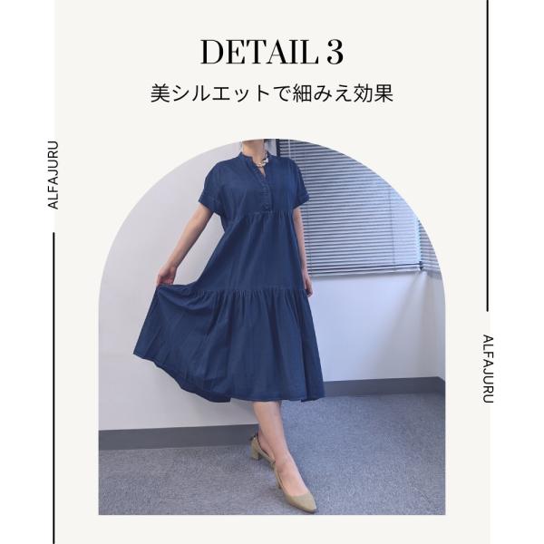 デニム風ワンピース ティアードワンピース 夏ワンピース 綿ワンピース コットン100% デニムワンピース ミモレ丈 ロングワンピース カジュアルワンピース