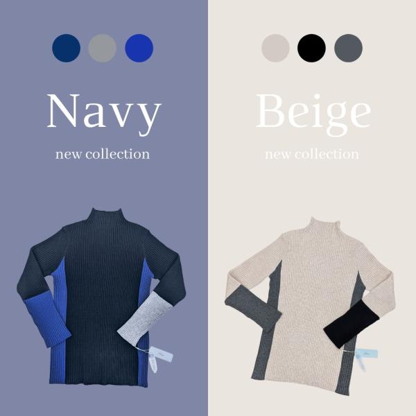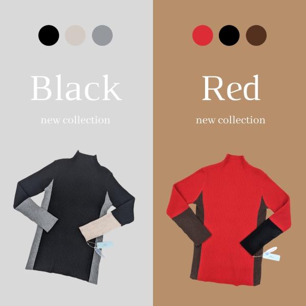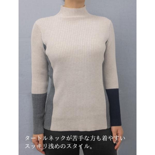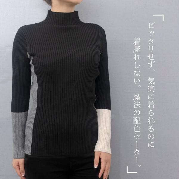 ニットセーター 秋セーター 秋トップス ハイネック レディース リブニット 長袖 プルオーバー 秋 タートルネック 秋冬 ウール カジュアル 大人 2021 着やせ 配色ニット 配色セーター