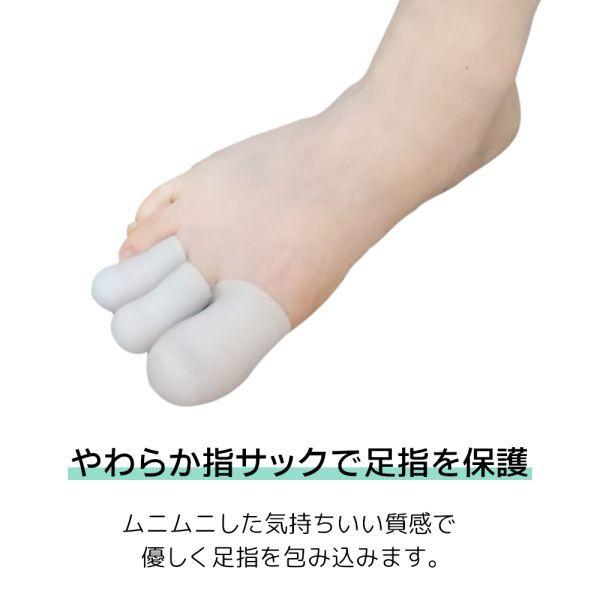 足の指先にかぶせることで、指や爪を優しく保護します。