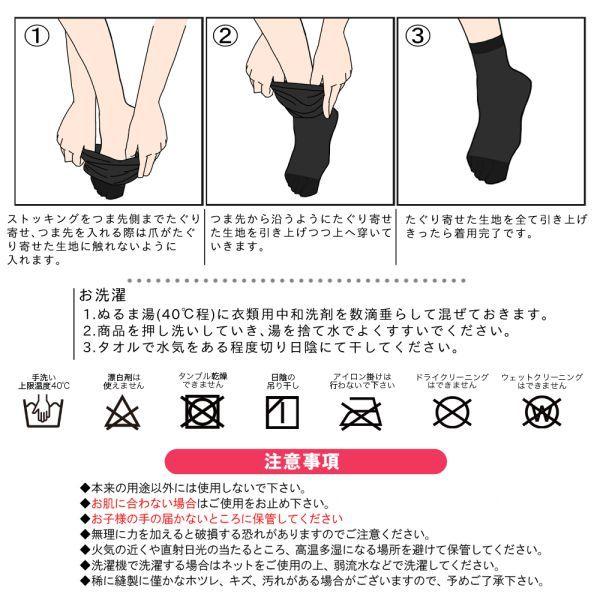 ・着用する際は商品をつま先までたぐり、足のつま先を入れて沿わせるように優しく引き上げて下さい。