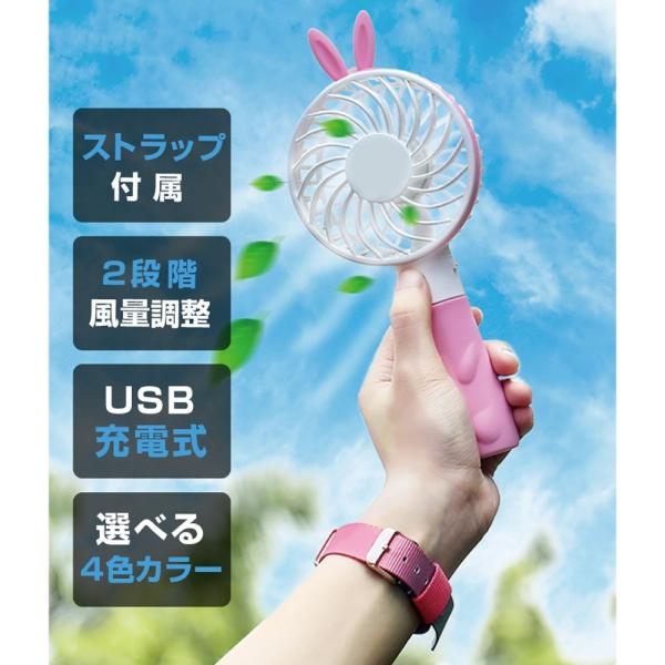 【1個買うと1個もらえる!】 ハンディファン みみ 手持ち ファン USB 扇風機 充電式 2段階 強風 MINI FAN ストラップ付き うさぎ くま eMR