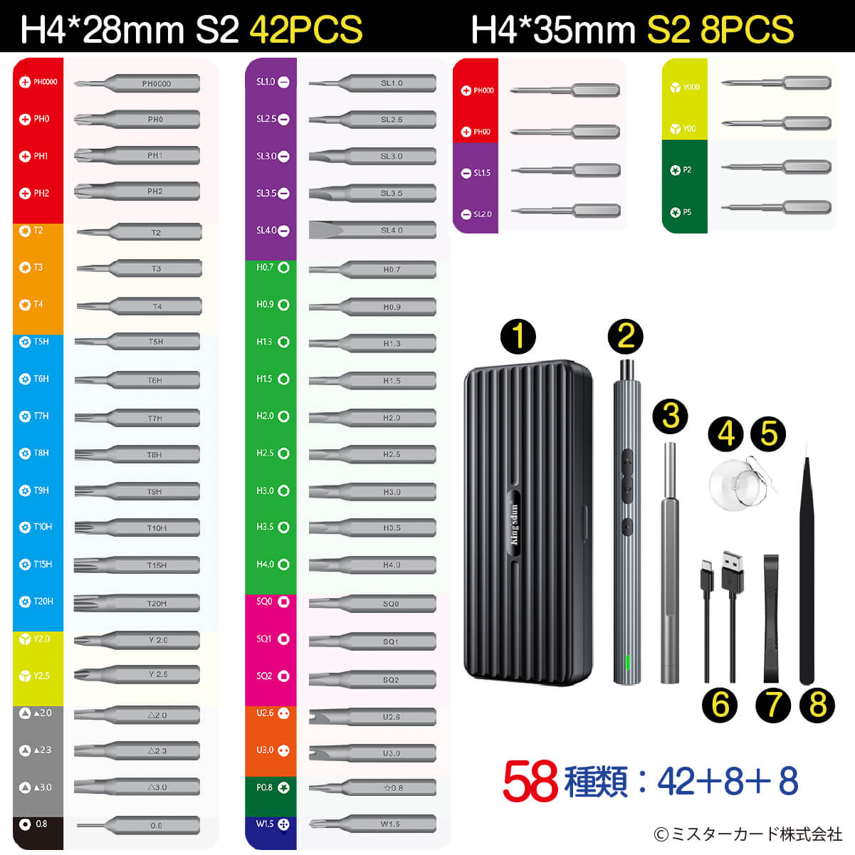 【500円クーポン】4/27まで 58in1ビット 電動精密ドライバー 手動にも対応 MR-58EPCB-GY マグネットマグネタイザー LEDライトアルミ 収納ケース付き
