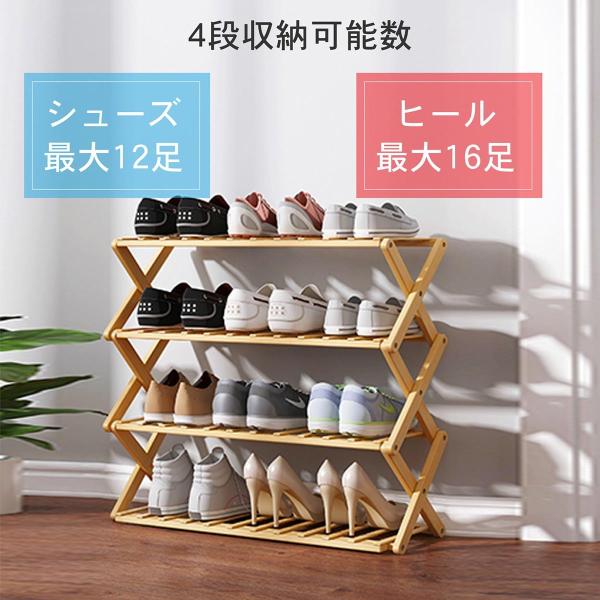 シューズラック 靴箱 下駄箱 靴 収納 スリム 完成品 組立不要 竹製 おりたたみ 4段 12足 玄関収納 おしゃれ オープンラックmiraiON MR-FSHC04