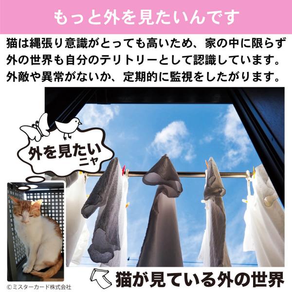 よくクラッキング(小さくケケケと鳴く行為)をする猫は外をしっかり見る事ができると満足するかもしれません。