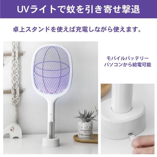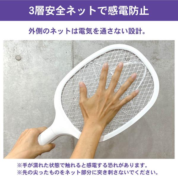 電撃 蚊取り ラケット ビリビリ蚊トラップ あの頃は蚊も殺せなかったのに 3層安全ネット 殺虫ラケット 充電式 殺虫器 蚊 ハエ UV 紫外線 LED MR-UBL01-PWH