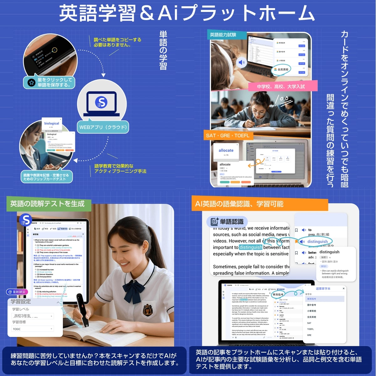 【文字をなぞって翻訳&読み上げ・テキスト化】多機能ペン型スキャナー WorldPenScan Ai Reader 業務効率 英語学習 発音 リスニング PENPOWER PP-AIWPSRD