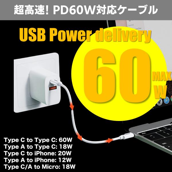 【高速充電】PD60W対応CtoCケーブルなので外出先でサクサク充電!