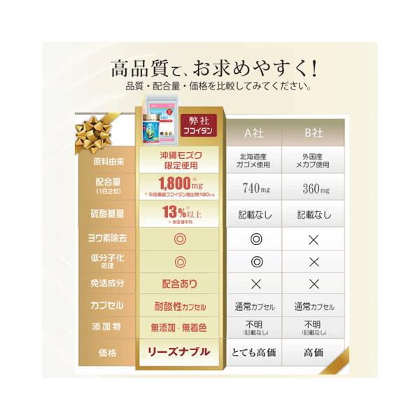原材料名:モズク抽出物(沖縄県産)、ボタンボウフウ粉末(長命草)、担子菌抽出エキス末、破壁霊芝胞子粉末/ゼラチン