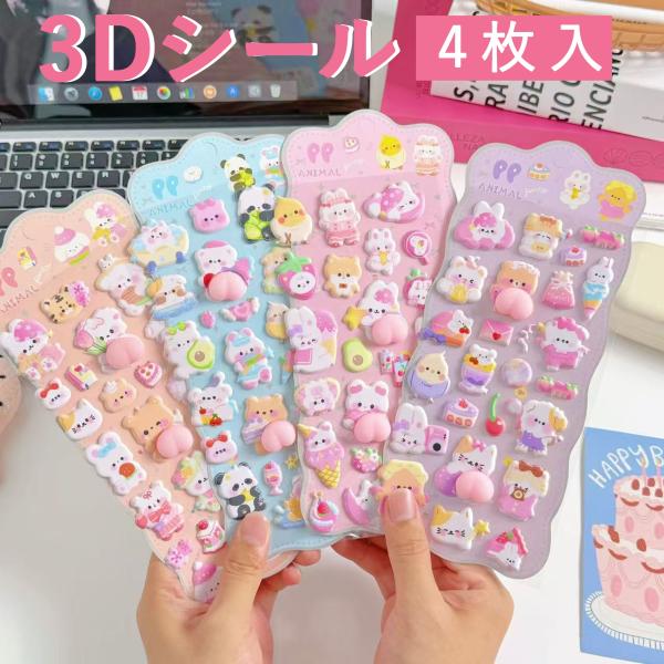 「4枚セット」シール ぷくぷくシール 立体シール かわいい ストレス解消 装飾用 DIY用 シール交換 シール帳 3dシール 動物 手帳 日記帳用 子供 女の子 男の子