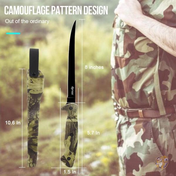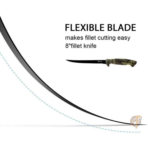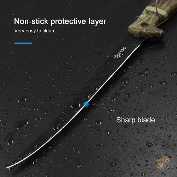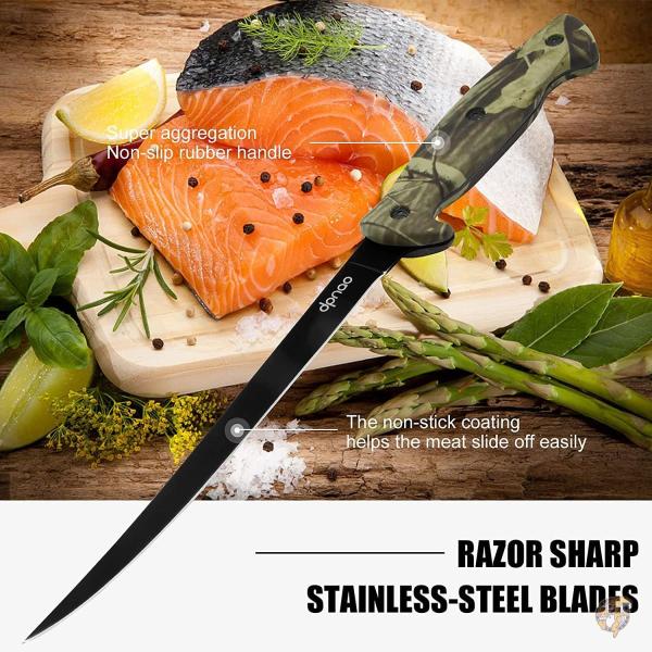●カミソリのシャープなステンレススチールブレード:美しいブラック仕上げで、ノンスティックコーティングで肉が滑り落ちるのを防ぎます。 フィレットナイフは、淡水や海水魚のフィレに使用できます。大きなゲーム魚をステーキし、肉や魚を骨から取り除いたり、かつてないほど簡単に骨から取り除くことができます。