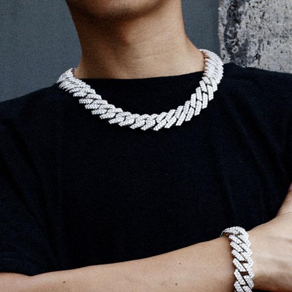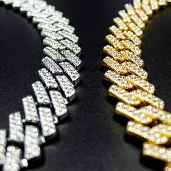 HIPHOPアーチストに愛されるマイアミ・キューバンリンクチェーン。ど派手に着飾り、より強い自己主張を是とする文化から生まれた力強いチェーンです。特に"ブリンブリン"と呼ばれる、ダイヤなどの石を一面に散りばめた煌びやかなデザインが人気です。インスタ映えや年末に増えるパーティでも活躍。