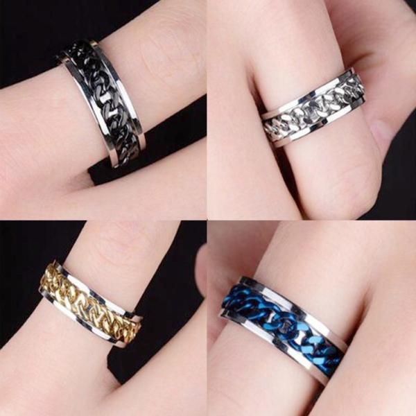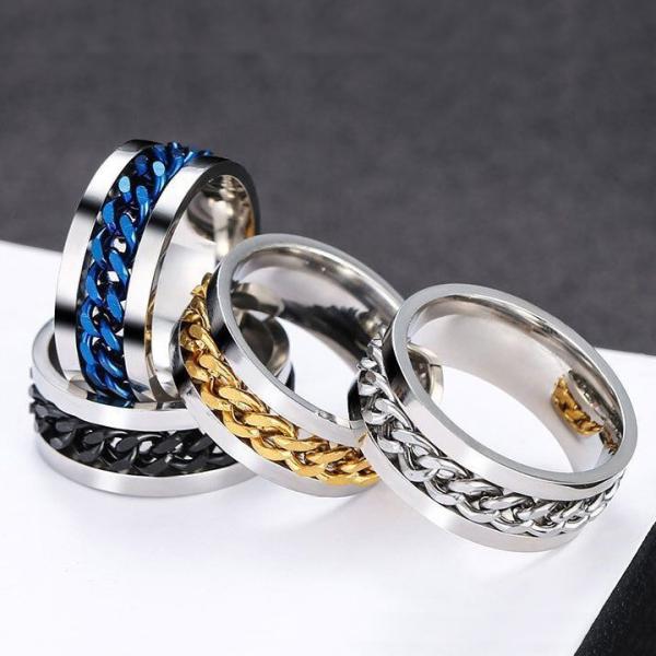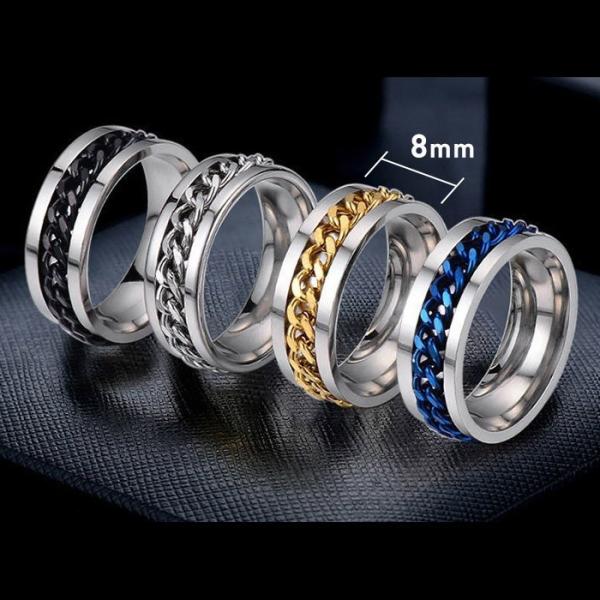 喜平チェーンリング 指輪 サージカルステンレス シルバー ブルー メンズ レディース 8mm 送料無料