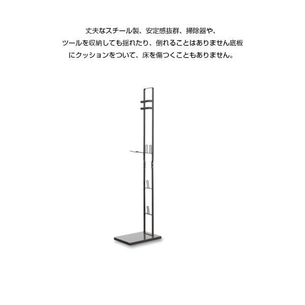 ●壁に穴開け不要で、おうちの壁に傷つけることなく、スタンドの底板にクッションもついて、フローリングにもやさしい、専用スタンドではクリーナーと付属のツールを一括収納できる掃除機スタンドです。