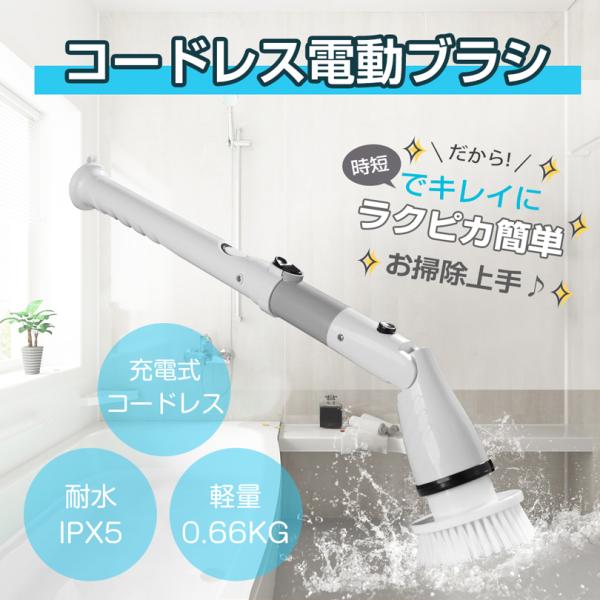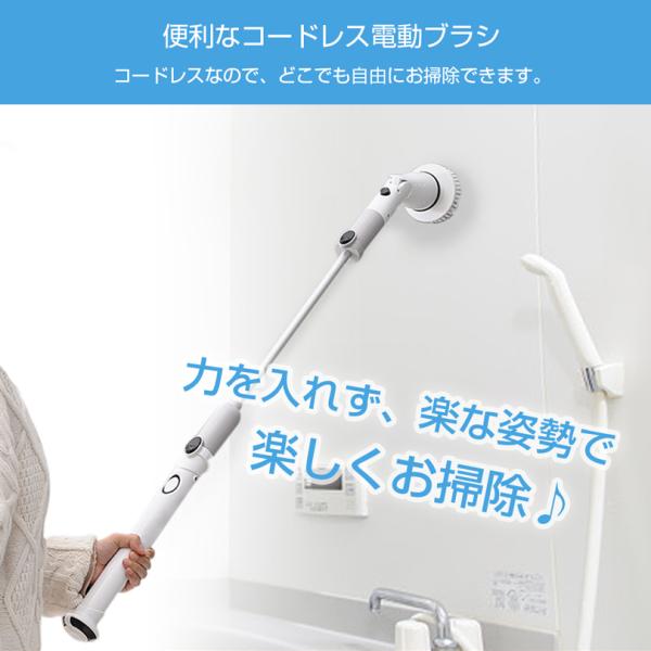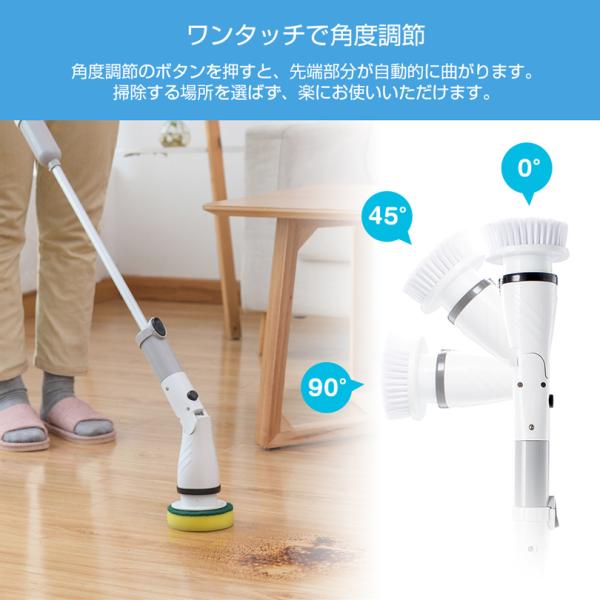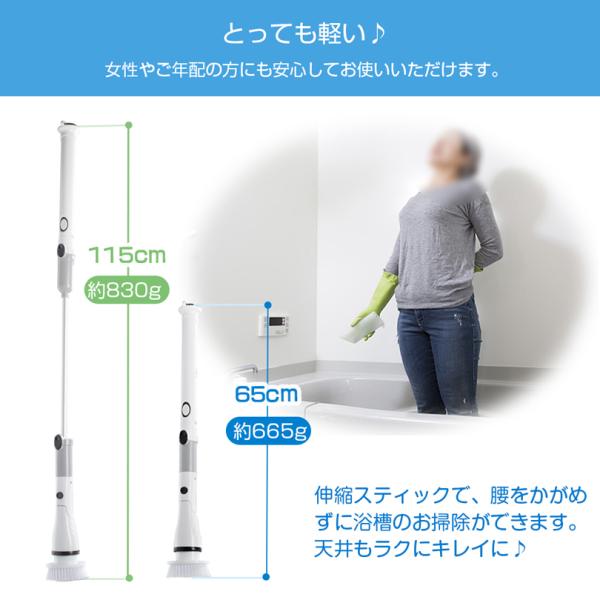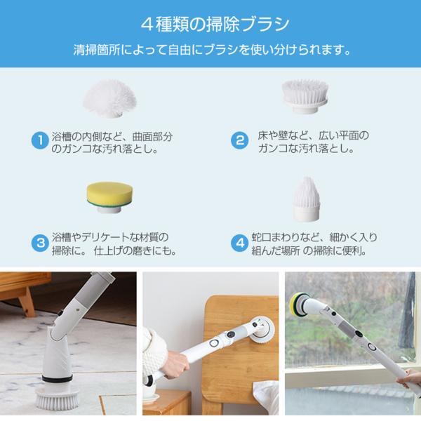 電動お掃除ブラシ バスポリッシャー充電式 風呂掃除 浴室掃除電動ブラシ 4種類の多機能ブラシ付 ハンドル伸縮可能 軽量 コードレス 浴室 キッチン お手洗い