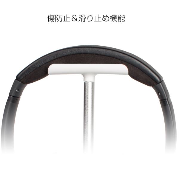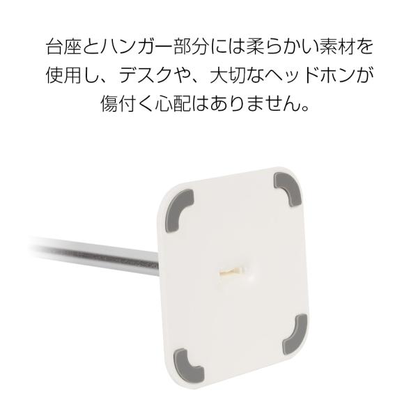 【傷防止機能】ヘッドホンをかける部分は柔らかい材質使用、台座にクッションが付いている。