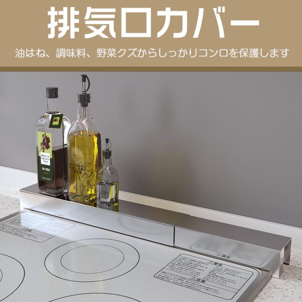 排気口カバー ステンレス 伸縮式 幅 45cm 60cm 75cm ガスコンロ/IHクッキングヒーター 対応 調味料ラック
