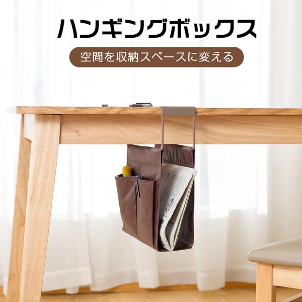 ハンギングボックス ハンギングラック A4対応 タブレット収納 テーブル下収納 机下 吊り下げ デスク下 収納 マガジンラック 引っ掛け ブラウン