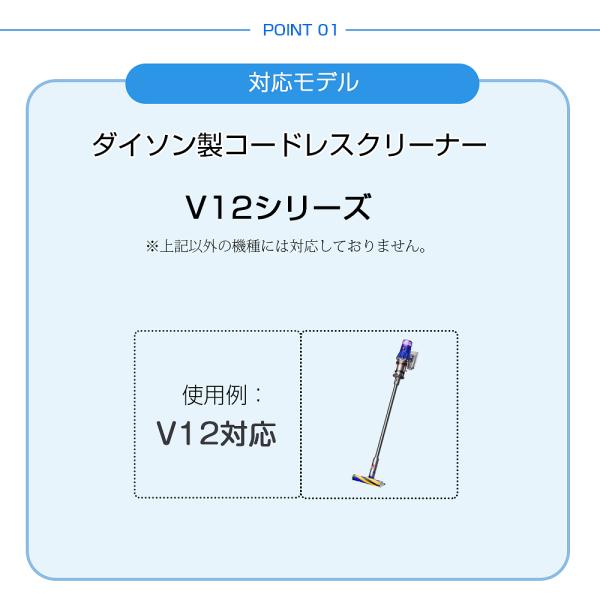 ●対応機種:dyson 掃除機 V12シリーズ V12 Detect Slim Fluffy (SV20 FF EX) 、 V12 Detect Slim Complete (SV30 ABL EX) 、 V12 Detect Slim+ (SV30 ABL BC) 、 V12 Detect Slim Fluffy (SV20 FF N) 、 V12 Detect Slim Complete (SV30 ABL2) 、V12 Detect Slim Absolute (SV46 ABL EX、SV46ABL)