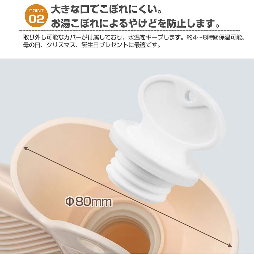 安全に使っていただくため、ボトルにはスクリューキャップを採用!しっかり閉めやすいからお湯を入れても漏れにくいんです。室温で約4-8時間、布団の中なら約8-10時間あたたかさをキープできます。※周辺温度や使用よ異なります。