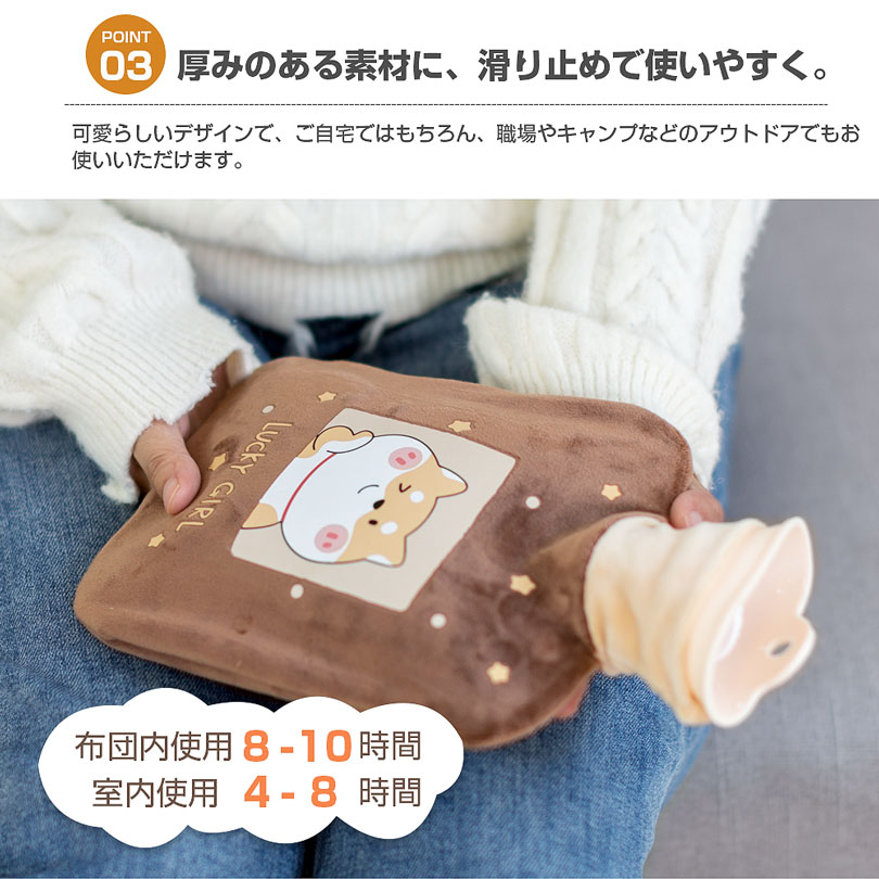 柔らかく取り外し可能な布団が付いており、滑り止めで使いやすい!また、湯たんぽを衝撃や汚れから守り。可愛らしいデザインで、ご自宅ではもちろん、職場やキャンプなどのアウトドアでもお使いいただけます。母の日、クリスマス、誕生日プレゼントに最適です。